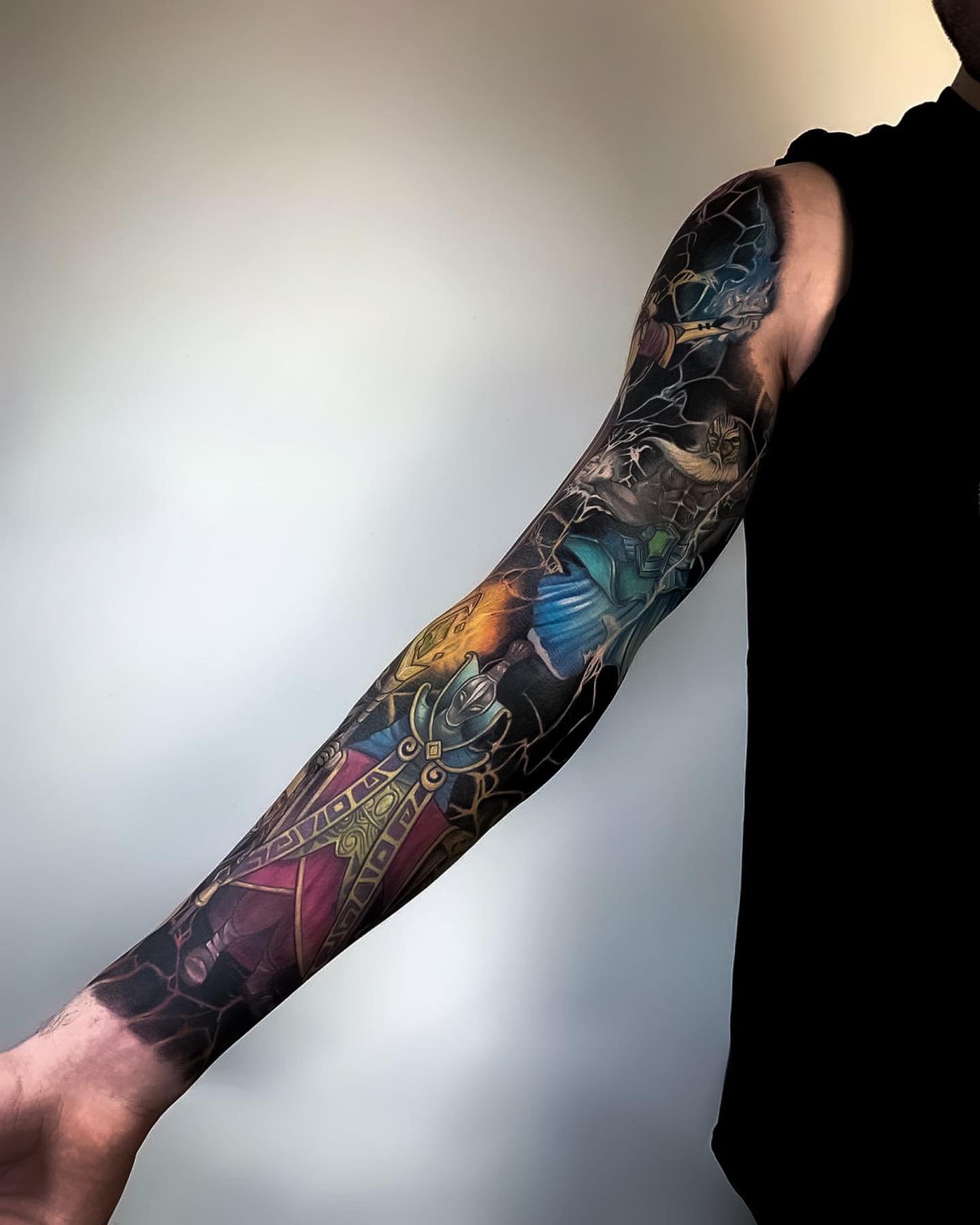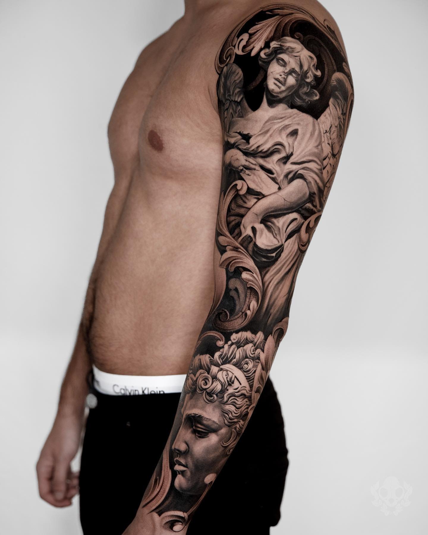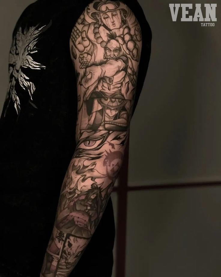 - Manchette complète : une option classique pour ceux qui n'ont pas peur d'expérimenter. Les compositions couvrant tout le bras permettent de combiner plusieurs thèmes et de créer un univers unique qui prend vie sur votre peau. La manchette offre un espace pour intégrer différents éléments et motifs, créant des récits complexes et élaborés. Parfait pour ceux qui aspirent à un maximum d'artisme et sont prêts à montrer leur histoire unique chaque jour.