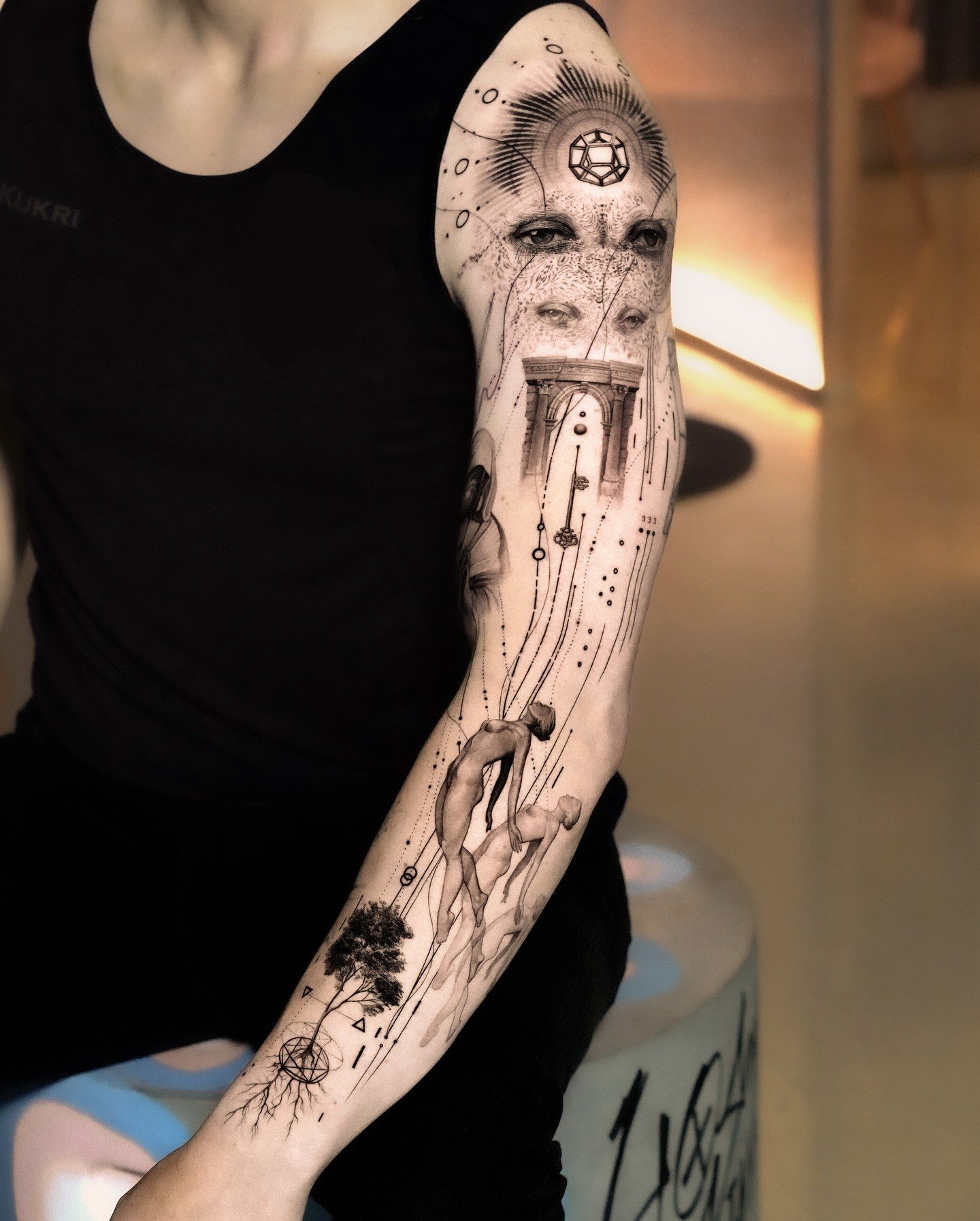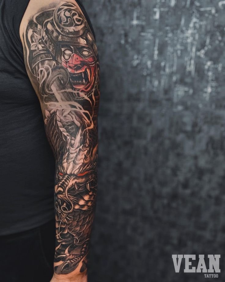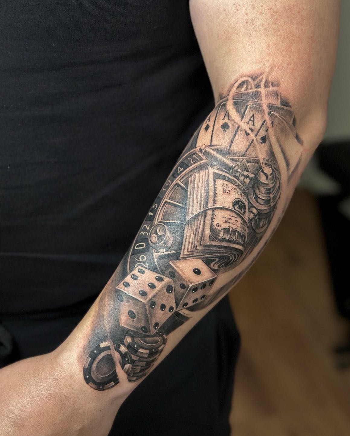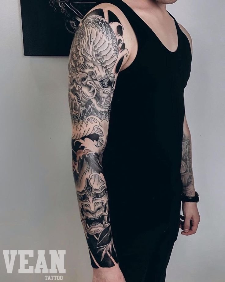 - Manchette complète : une option classique pour ceux qui n'ont pas peur d'expérimenter. Les compositions couvrant tout le bras permettent de combiner plusieurs thèmes et de créer un univers unique qui prend vie sur votre peau. La manchette offre un espace pour intégrer différents éléments et motifs, créant des récits complexes et élaborés. Parfait pour ceux qui aspirent à un maximum d'artisme et sont prêts à montrer leur histoire unique chaque jour.
