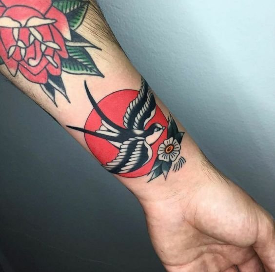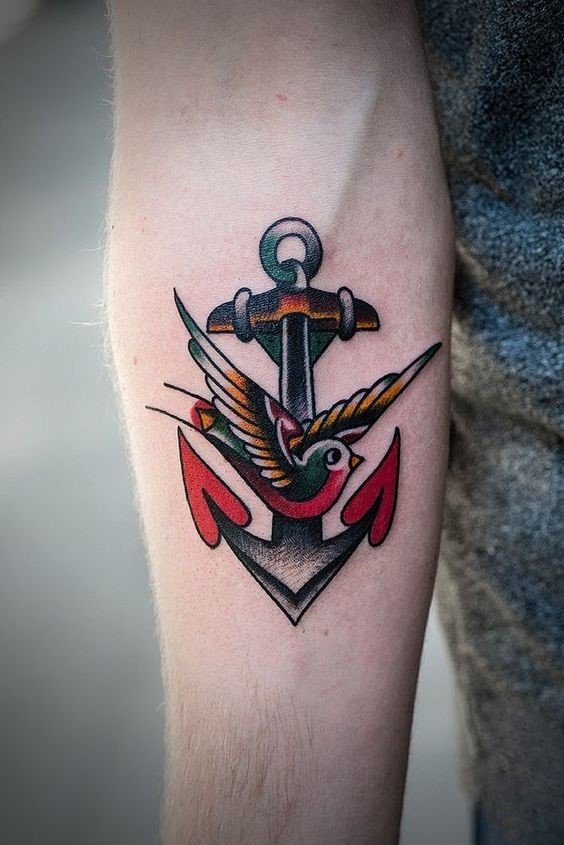 - Bras et avant-bras : C’est un emplacement classique pour des motifs tels que des ancres, des hirondelles et des cœurs.