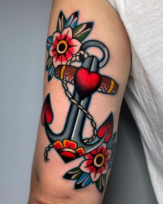 Les tatouages Old School se distinguent par leur simplicité, leurs couleurs saturées et leurs symboles classiques.