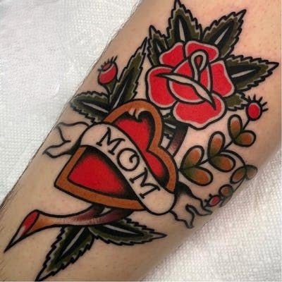 - Cœur avec un poignard ou une inscription "Mom": Un des motifs les plus reconnaissables. Le cœur symbolise l'amour et l'attachement, tandis que le poignard ajoute une touche de protection ou de tristesse.