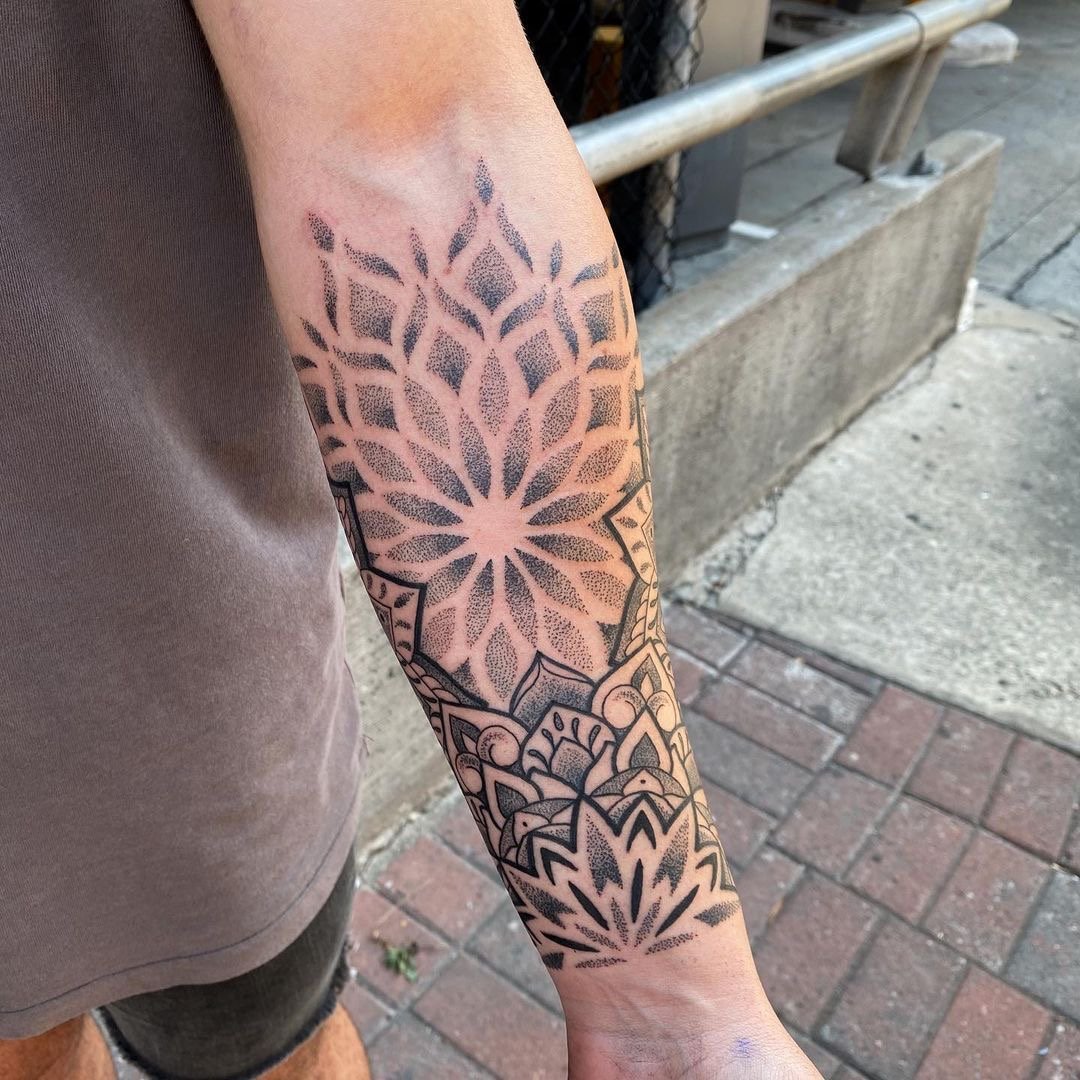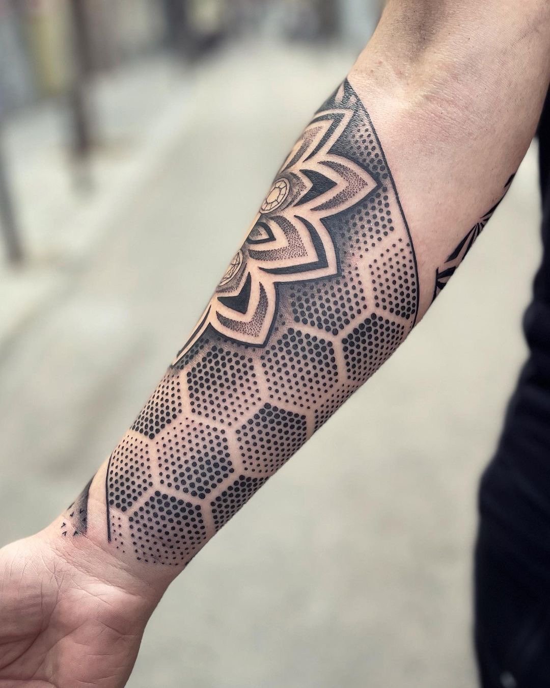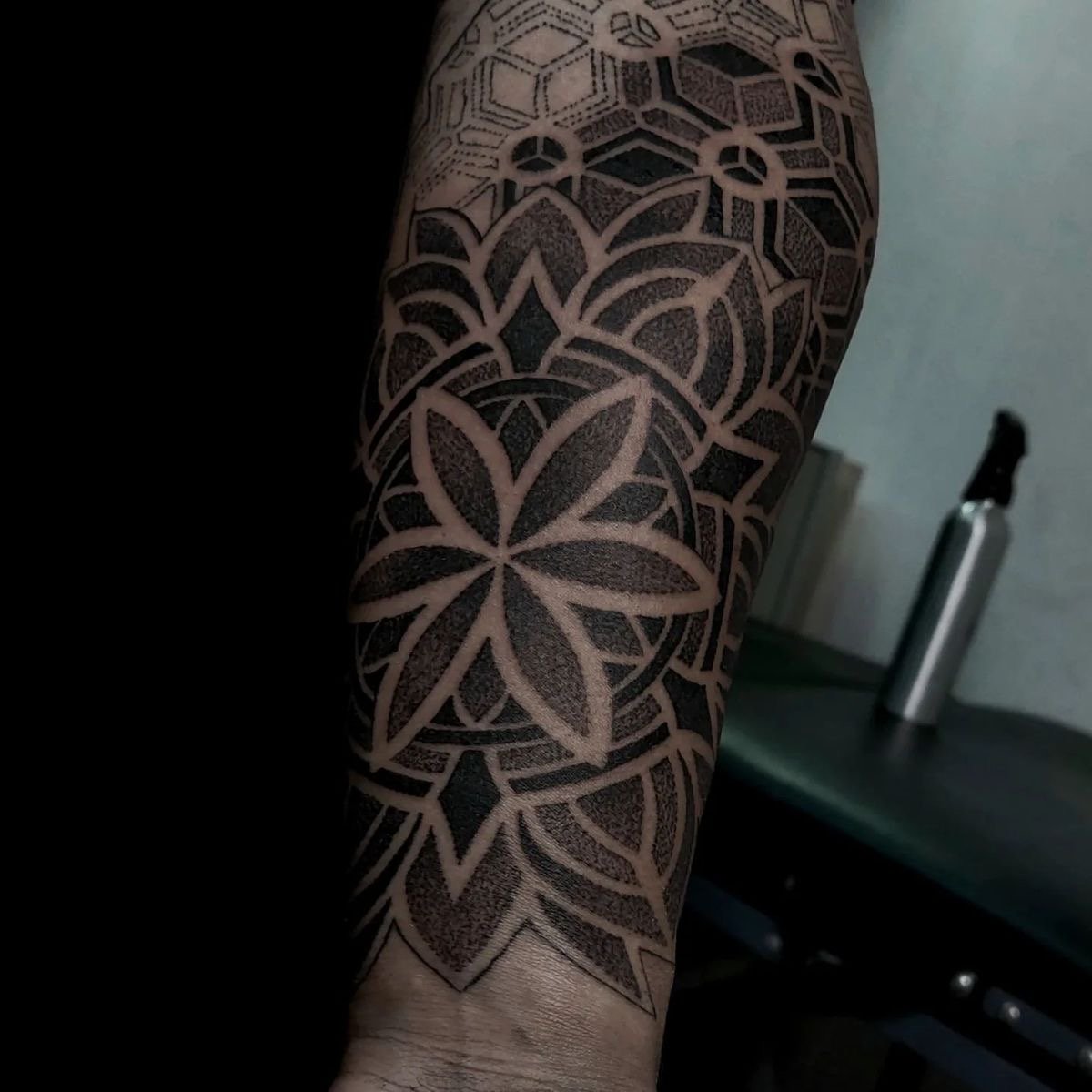 Les combinaisons de dotwork avec le linework et les motifs géométriques sont particulièrement efficaces.