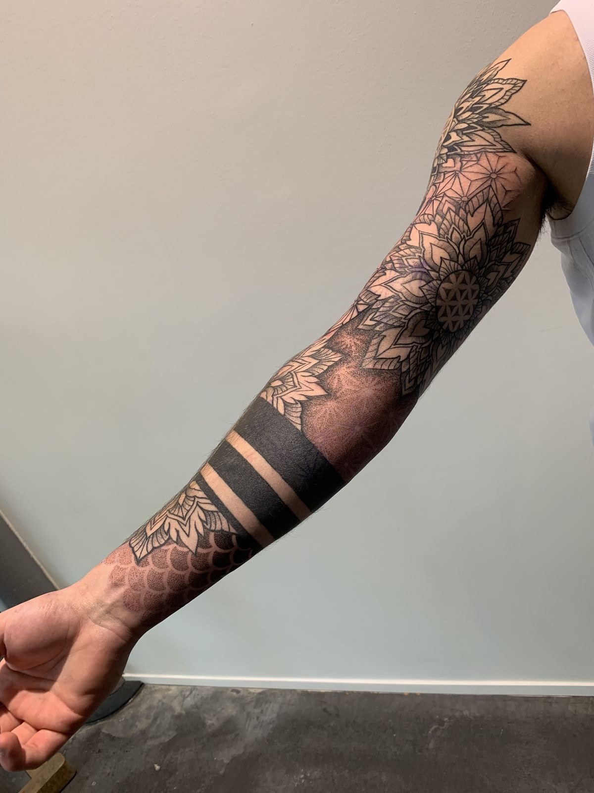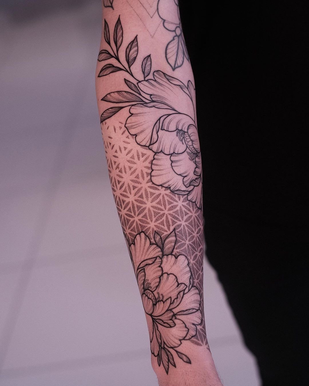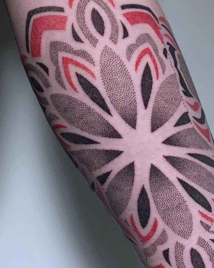 Les combinaisons de dotwork avec le linework et les motifs géométriques sont particulièrement efficaces.