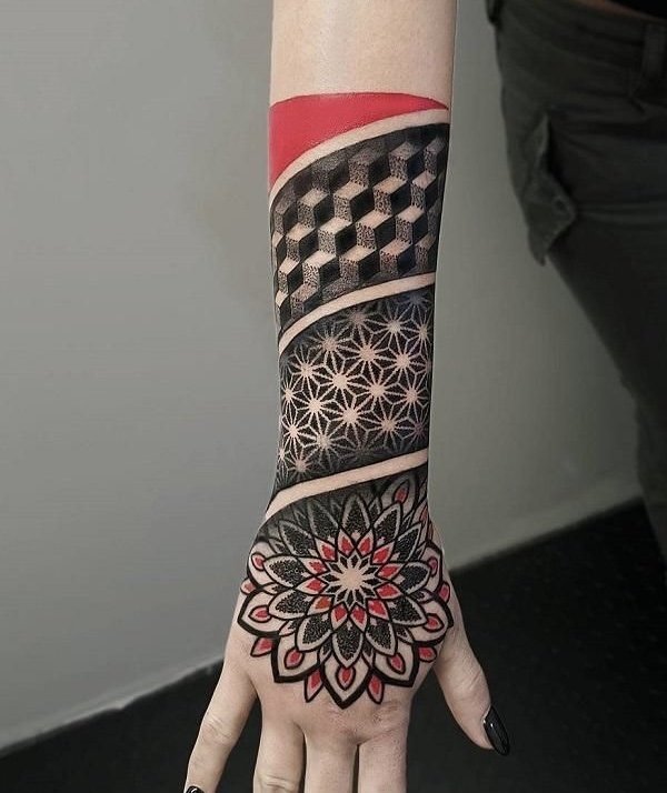 Les motifs géométriques, qui restent populaires depuis des décennies, sont les plus courants. Ce style est apprécié tant par les hommes que par les femmes, offrant des motifs adaptés aux particularités anatomiques et à l'esthétique de chacun.