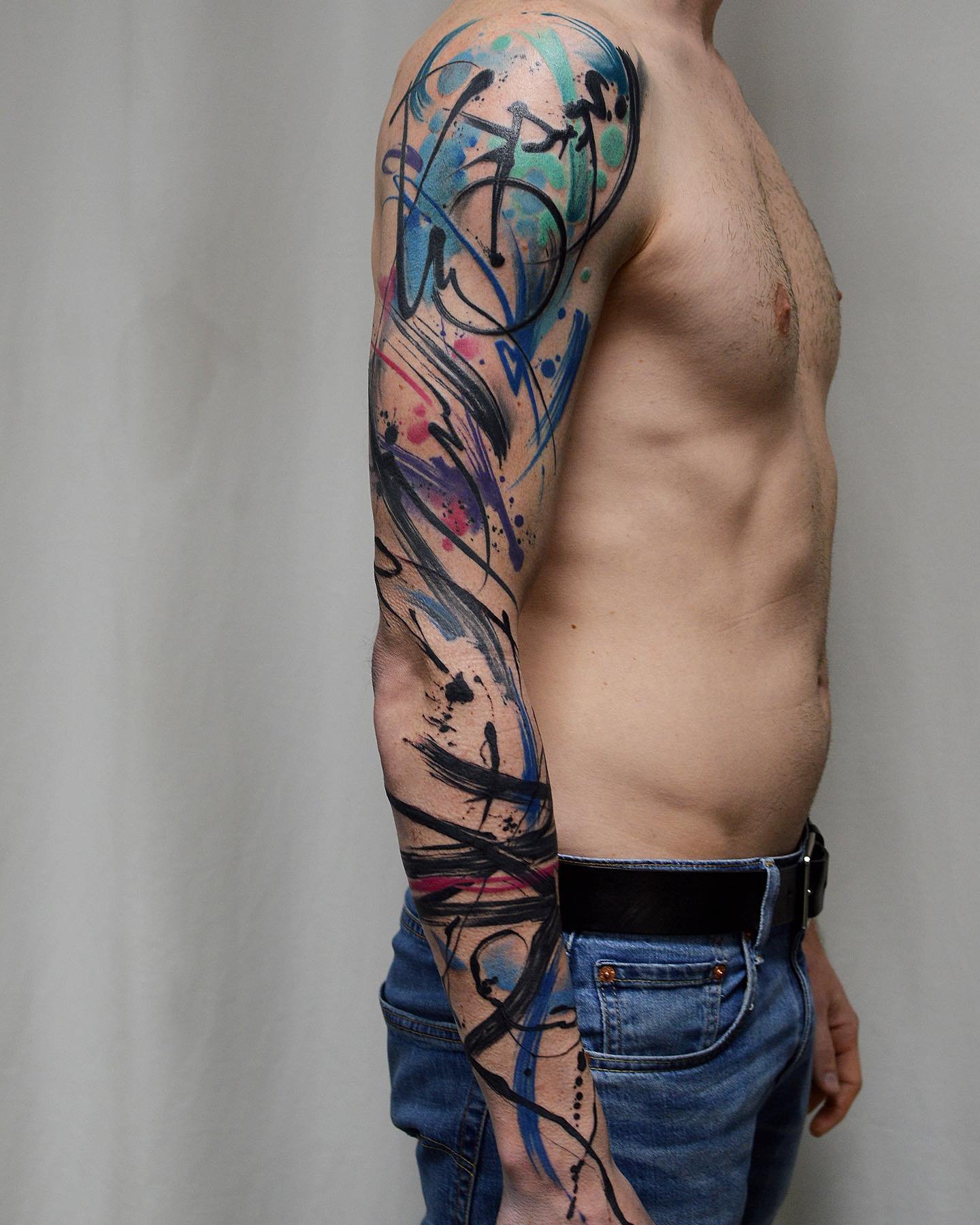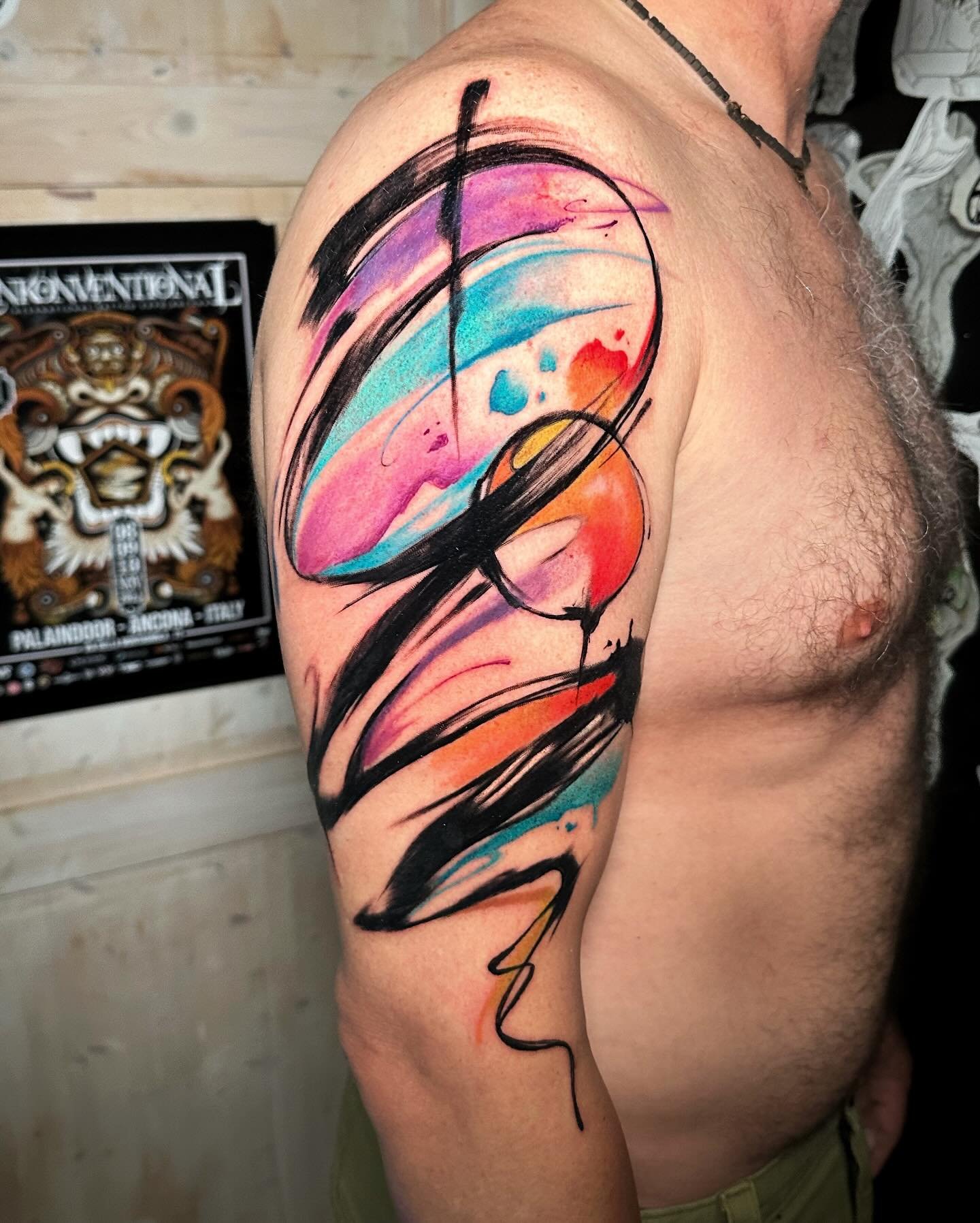 - Expressivité Émotionnelle : Ces tatouages servent souvent à exprimer des émotions et des humeurs, les transmettant à travers des formes et des couleurs abstraites.