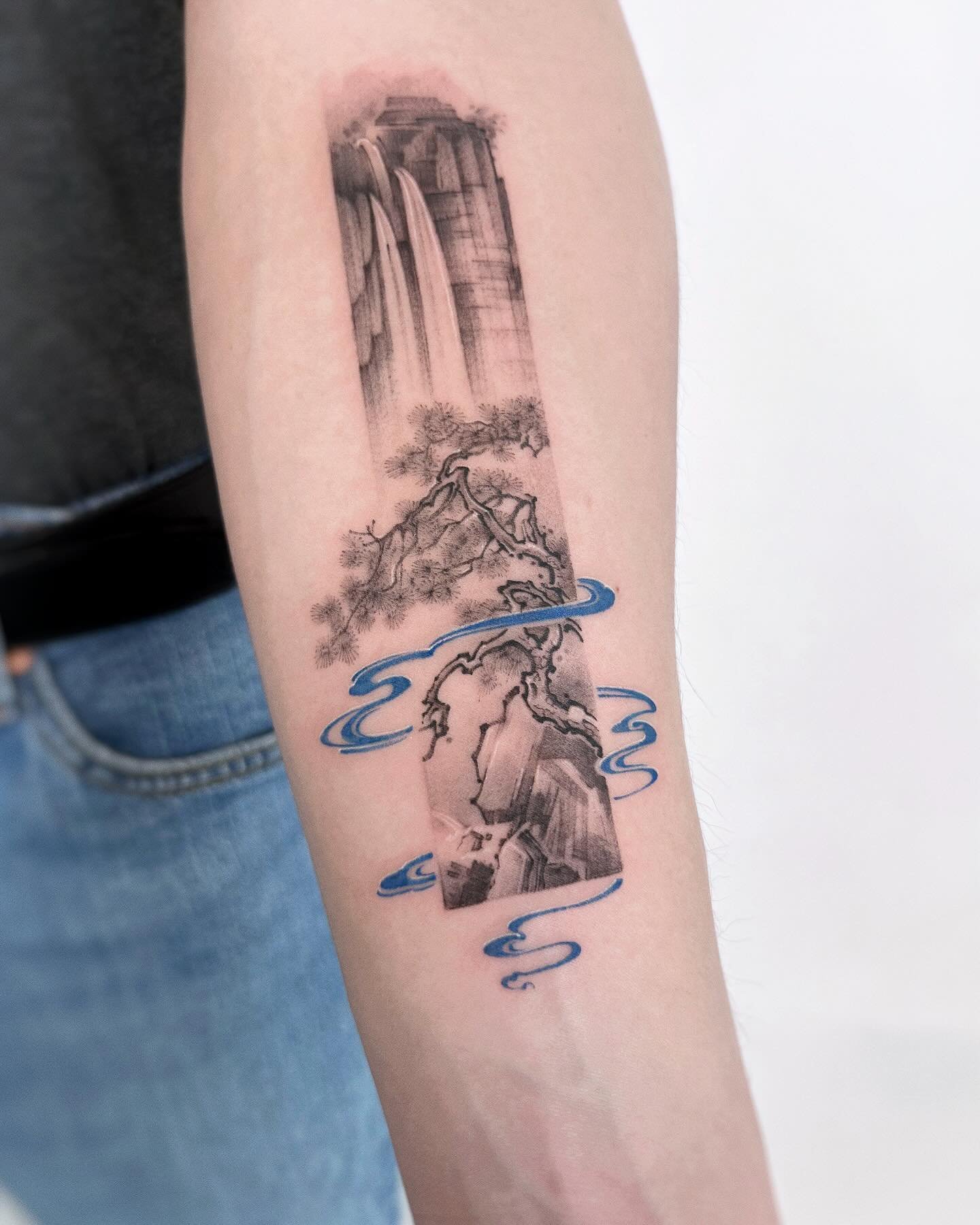 - Aquarelle : Les tatouages aquarelle utilisent des couleurs douces et floues, créant un effet semblable aux peintures à l'aquarelle. Ce style est idéal pour les œuvres abstraites, car il permet d'expérimenter avec les couleurs et leurs transitions.