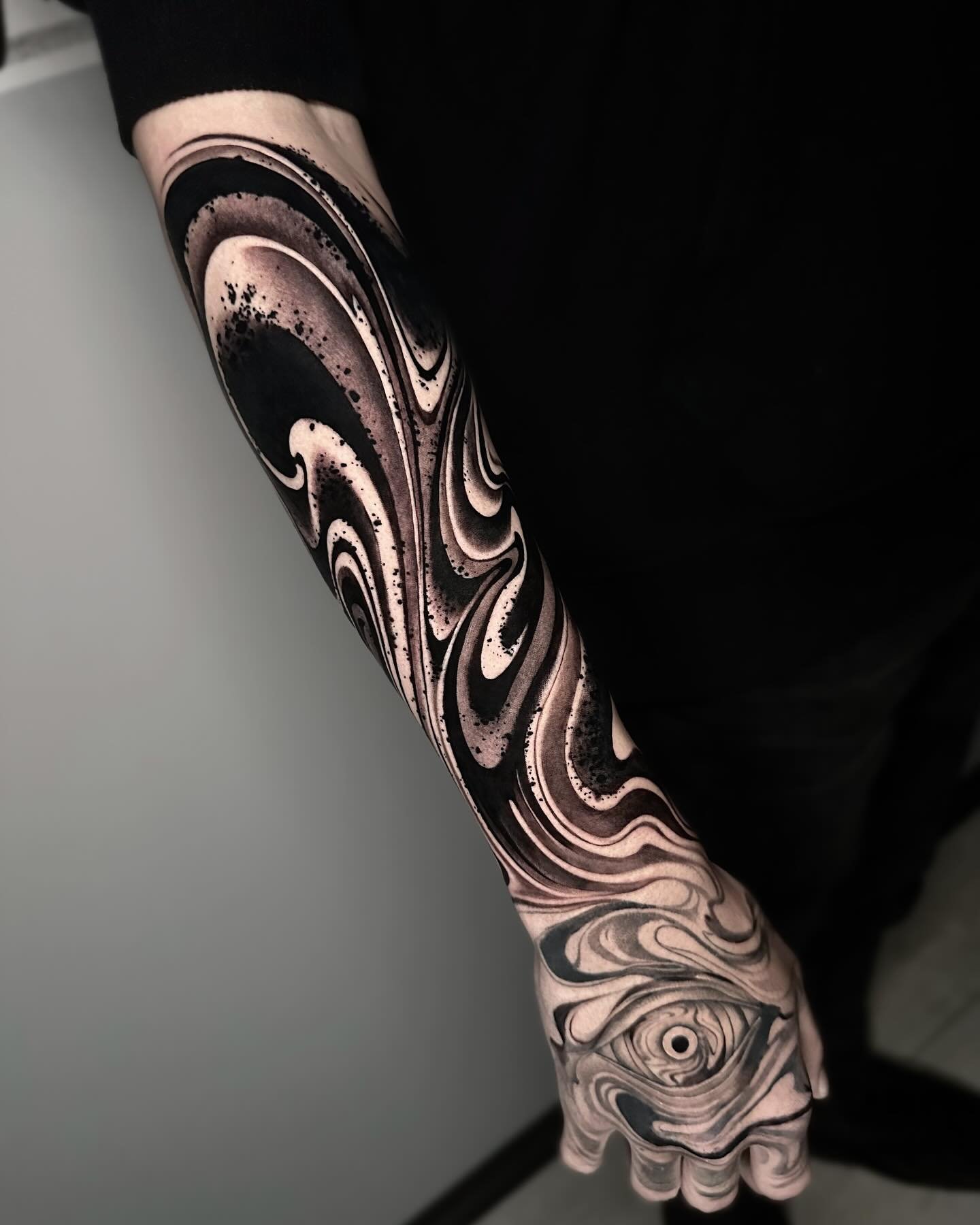 Les tatouages abstraits peuvent être placés sur n'importe quelle partie du corps, en fonction des préférences du client et de la taille de la composition.