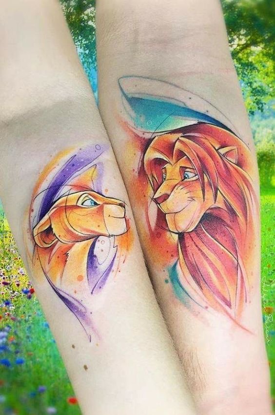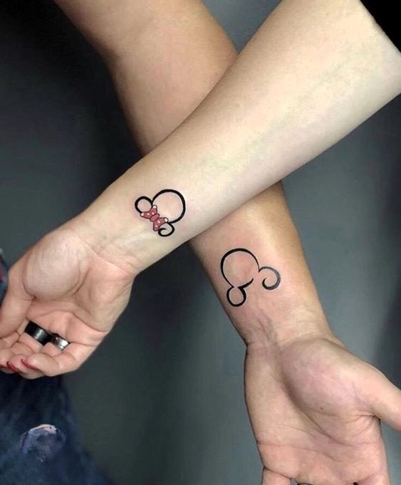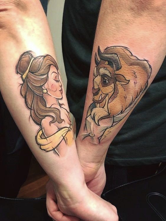 Les personnages de dessins animés et de livres peuvent être une idée parfaite pour des tatouages de couple, symbolisant les différentes facettes de votre relation. Par exemple, l’un des partenaires peut choisir Mickey Mouse, incarnant la joie et l’énergie, tandis que l’autre opte pour Minnie Mouse, symbole de tendresse et de douceur. Ensemble, ils représentent l’harmonie et la gaieté dans la relation. Aladdin et Jasmine sont également populaires, symboles d’aventure et de confiance. Un partenaire peut choisir de tatouer Aladdin avec son tapis volant, tandis que l’autre choisira Jasmine, signe d’indépendance et d’un amour capable de surmonter tous les obstacles. - Phases de vie et de l'amour