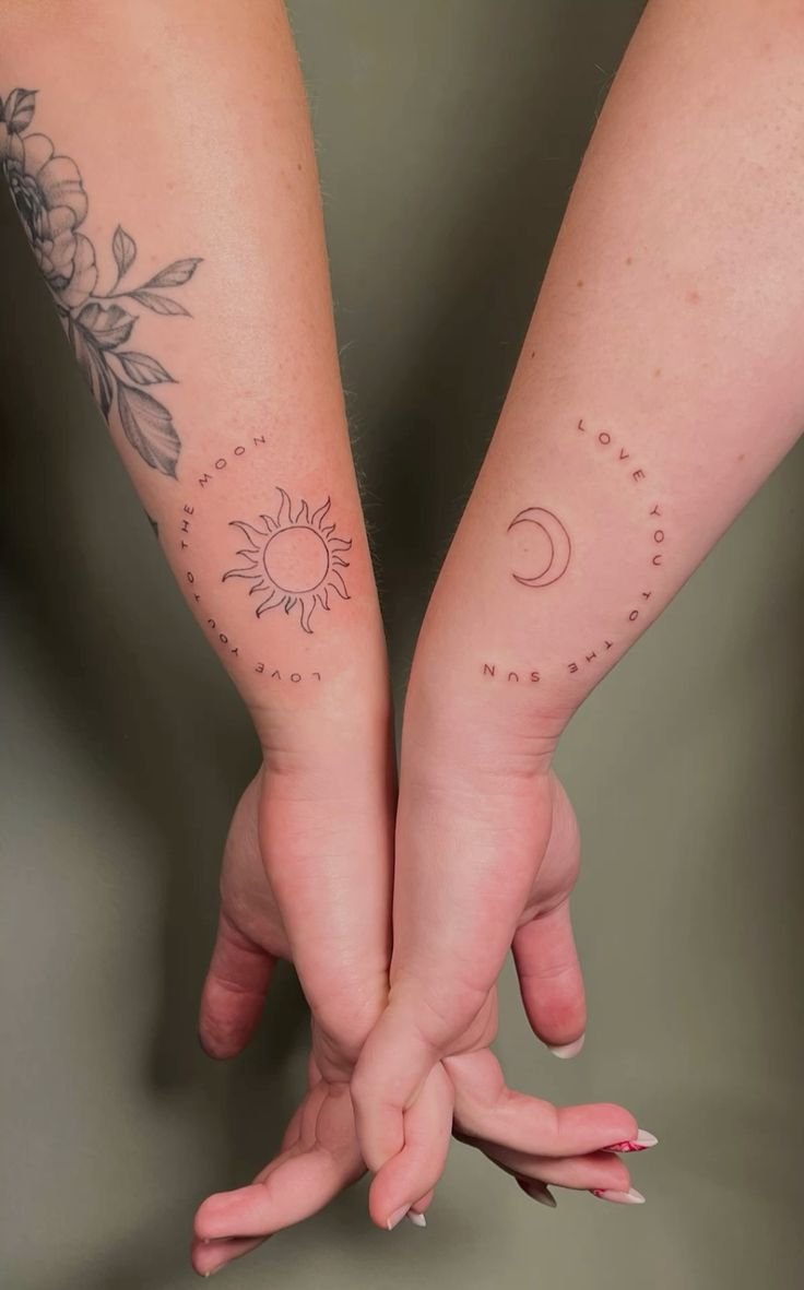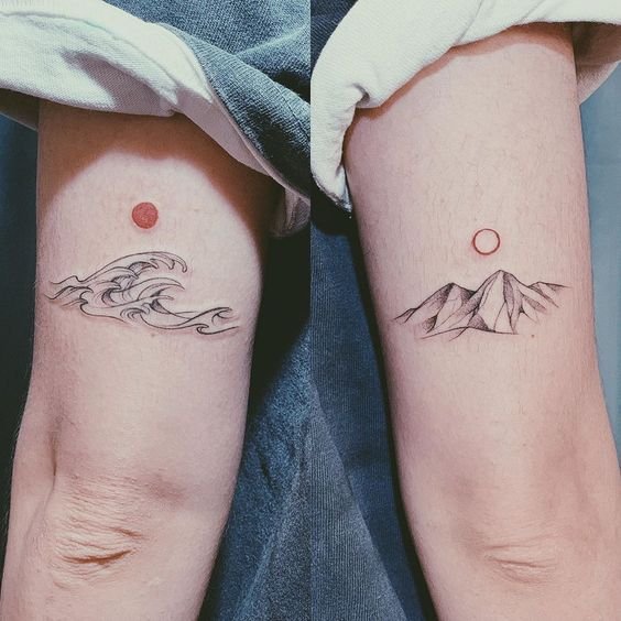 Une autre idée intéressante est de choisir des tatouages qui symbolisent les différentes étapes de votre vie et de votre relation. Cela peut être des représentations du soleil et de la lune, symbolisant le jour et la nuit, comme des cycles infinis de la vie. Ces tatouages soulignent l’idée que l’amour, comme la nature, passe par différentes phases mais revient toujours à sa source. - Une géographie partagée
