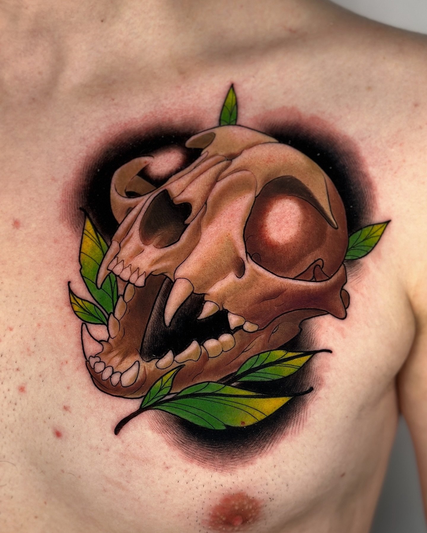 Les tatouages masculins en style Neo Traditional incluent souvent des images puissantes et des symboles de force: