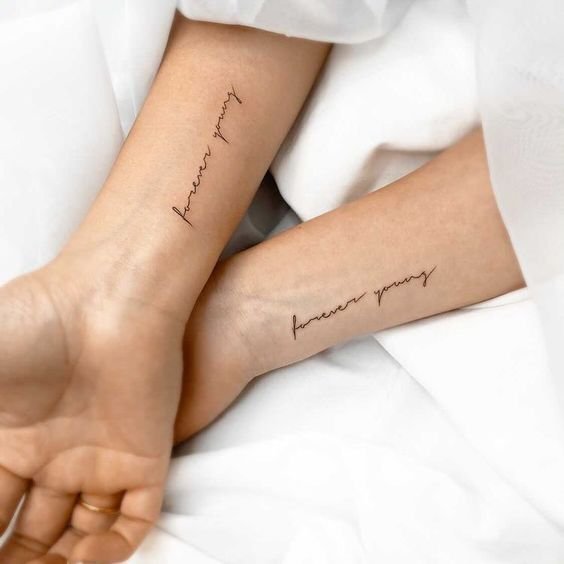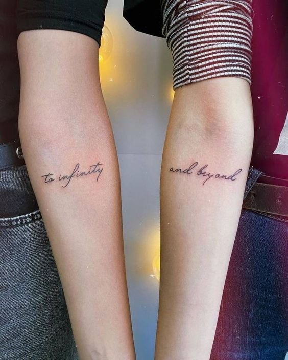 - Les courtes citations ou phrases qui vous tiennent à cœur peuvent constituer un tatouage parfait. Cela peut être une ligne d'une chanson, d'un film ou d'une œuvre littéraire qui vous rappellera toujours votre amitié.