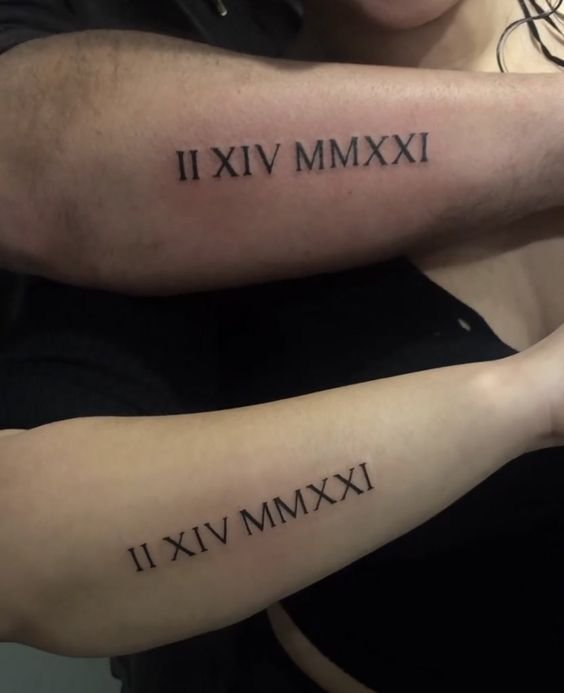 - Une autre option est de marquer une date importante pour vous deux sur votre peau. Cela peut être le jour où vous vous êtes rencontrés, celui où vous êtes devenus amis, ou tout autre moment significatif. Une date, inscrite sous forme d'une belle typographie ou accompagnée de symboles, vous rappellera toujours vos souvenirs communs.