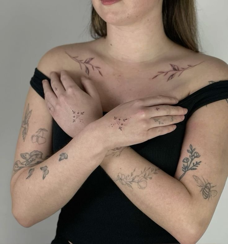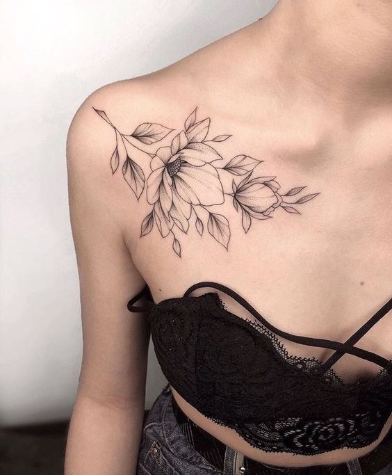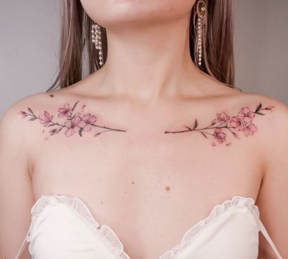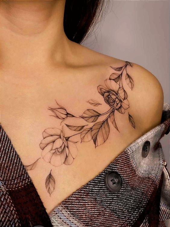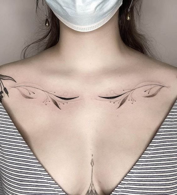 - Visibilité : Les tatouages sur les clavicules sont bien visibles, surtout lorsque vous portez des vêtements à épaules dénudées ou à décolleté plongeant. Cela en fait un excellent choix pour ceux qui souhaitent afficher leurs tatouages comme une déclaration de style ou comme une expression personnelle.