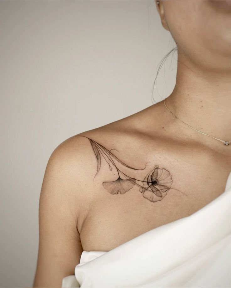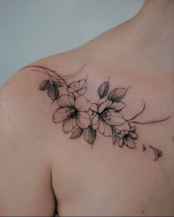 - Élégants et gracieux, les motifs floraux peuvent être petits et subtils ou s'étendre en compositions luxuriantes couvrant toute la clavicule et l'épaule.