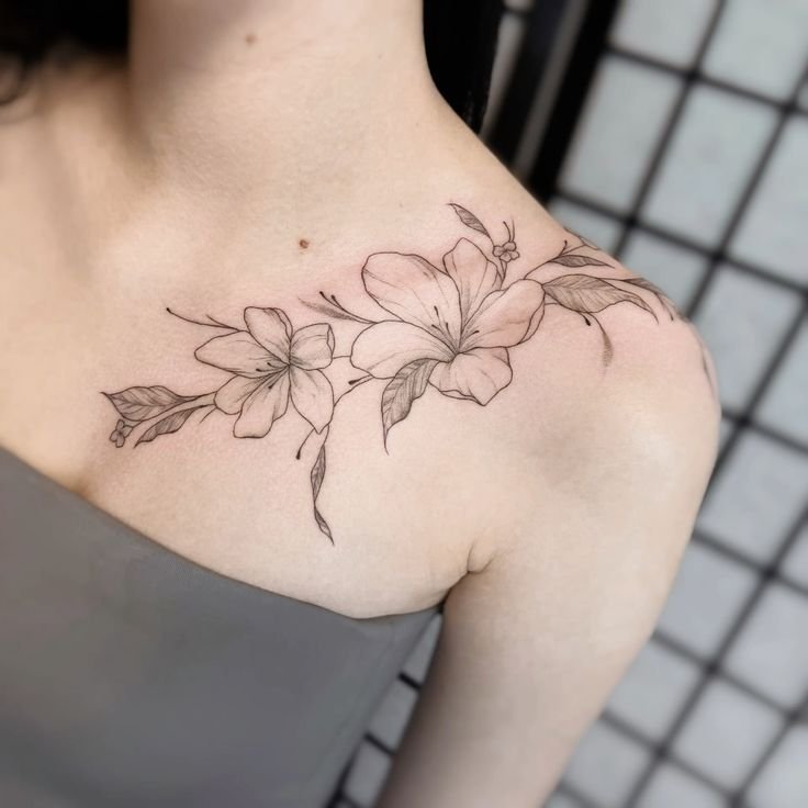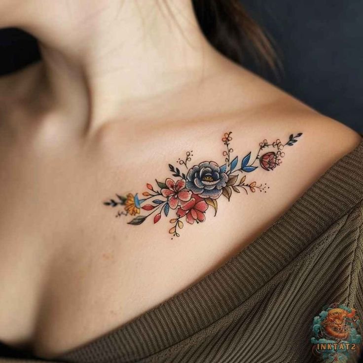 Les clavicules offrent un excellent emplacement pour les tatouages, combinant visibilité et espace suffisant pour la créativité.
