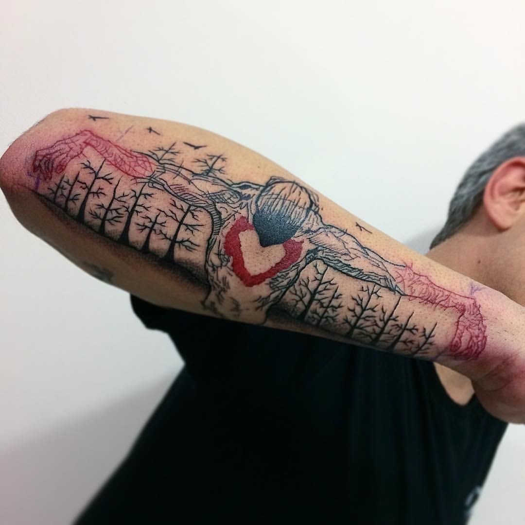 Des dinosaures aux samouraïs, des oiseaux à la mythologie, les variantes sont infinies quand il s'agit de tatouages en style Trash Polka.
