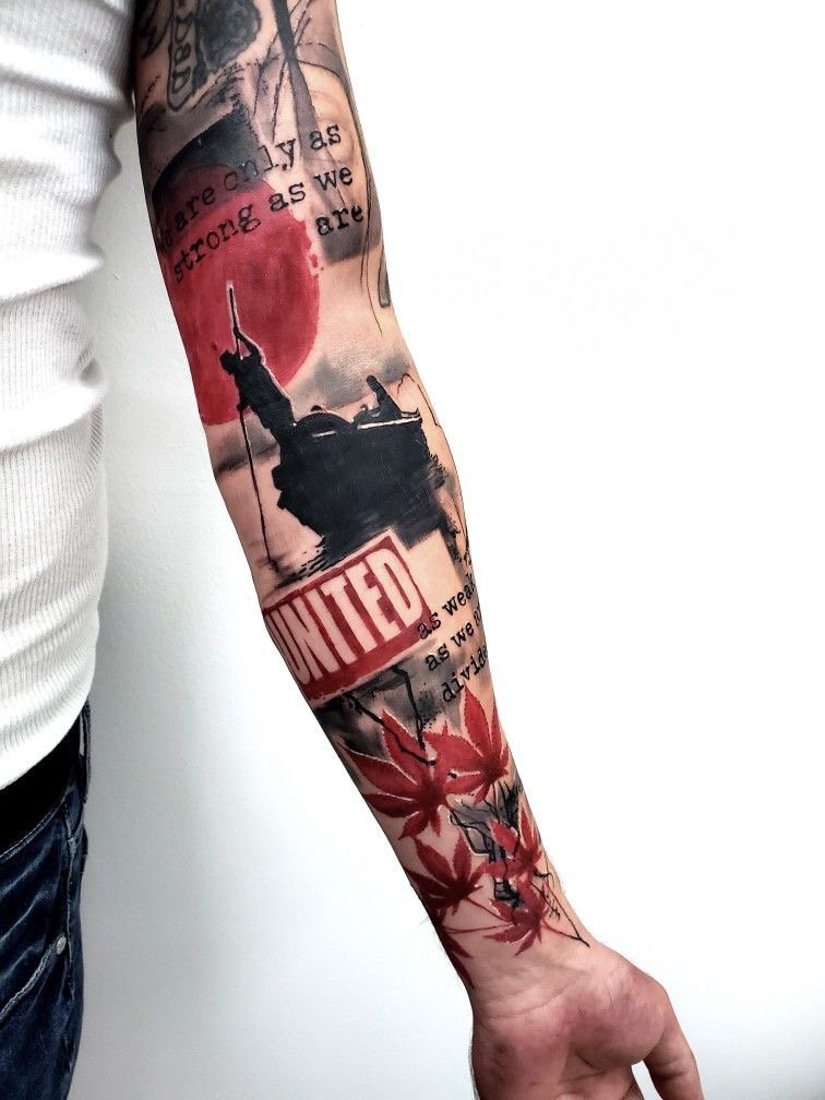 Titre accrocheur: Le Trash Polka – Une touche audacieuse et expressive Trash Polka est un style de tatouage audacieux et expressif qui permet de créer des images uniques et impressionnantes.