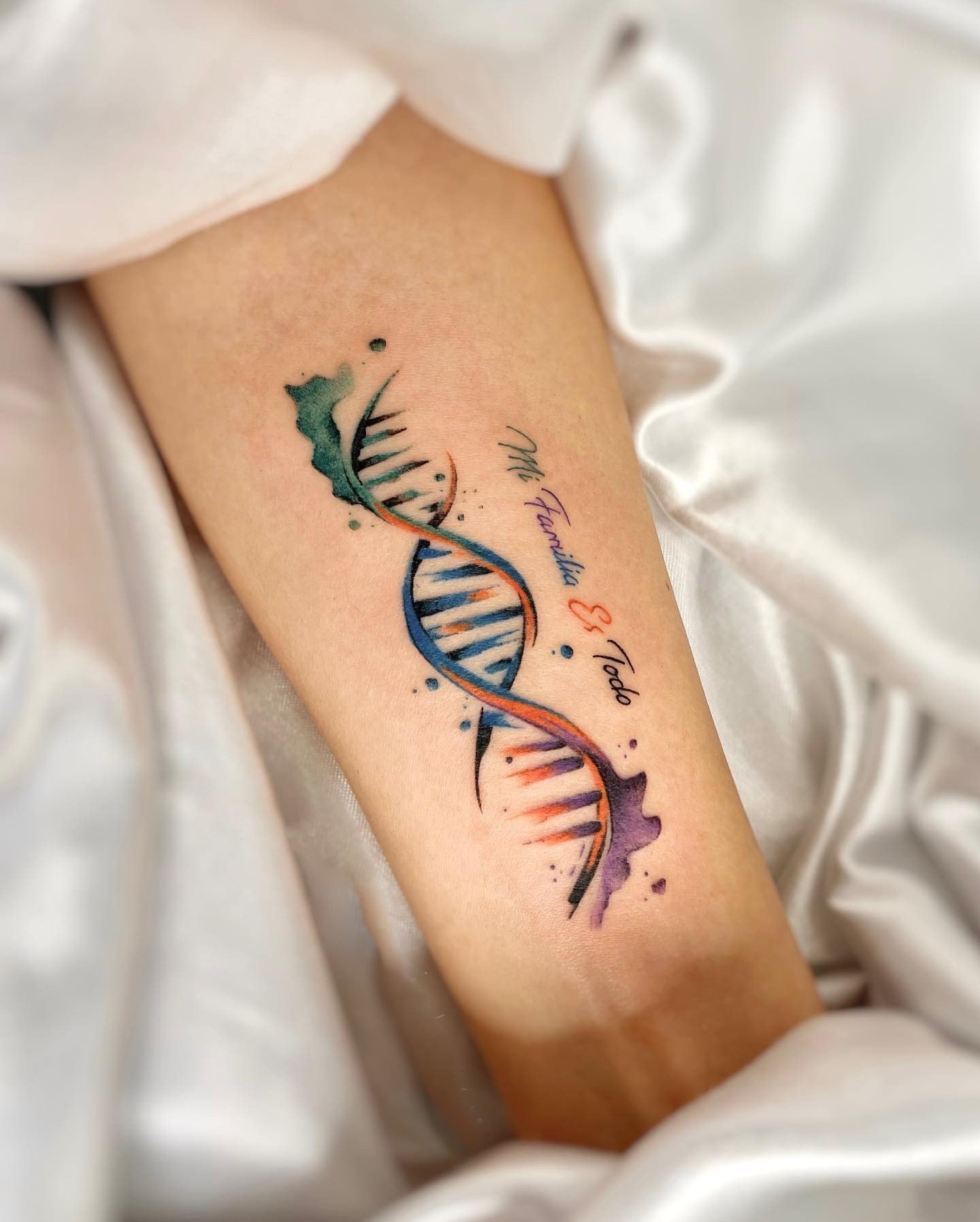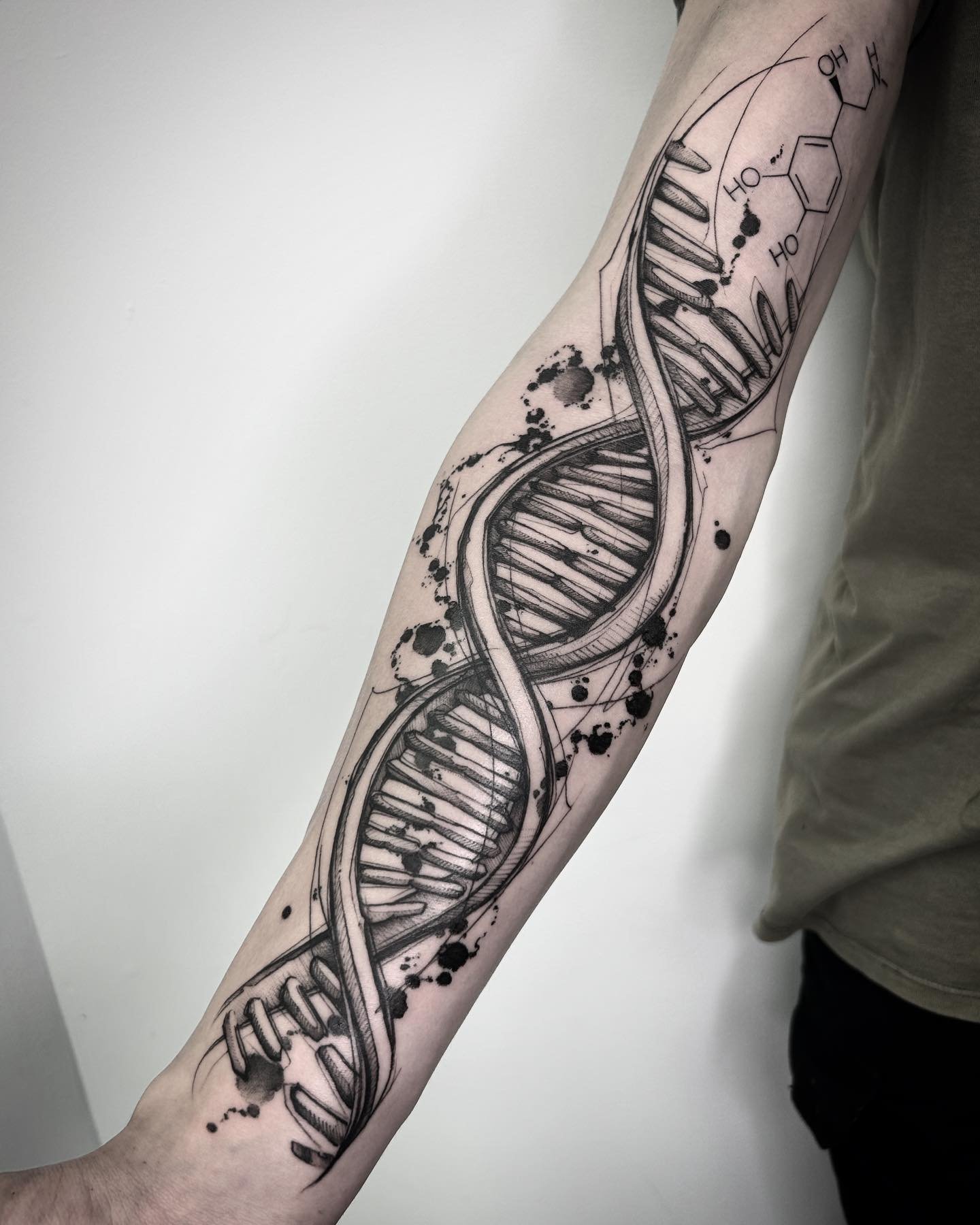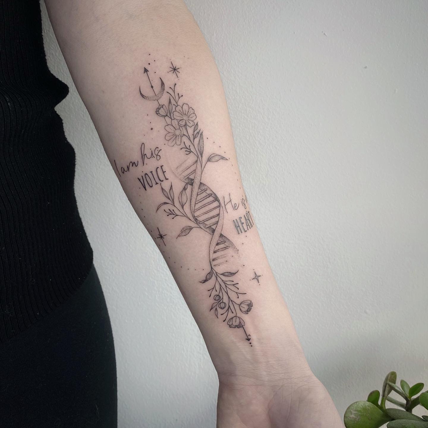 - Lien Familial : L'ADN symbolise également le lien génétique avec la famille et les ancêtres. Pour certaines personnes, ce tatouage devient un symbole de leur lignée et des traditions familiales.