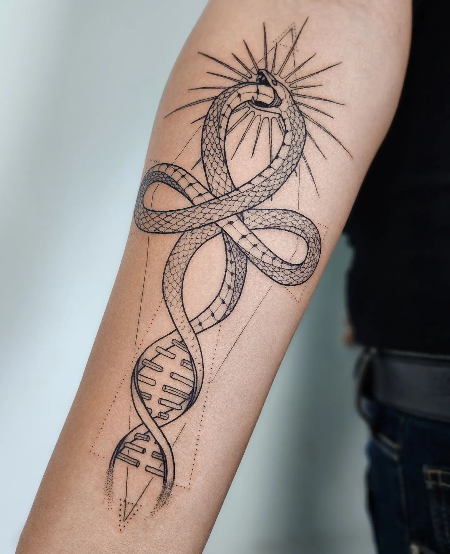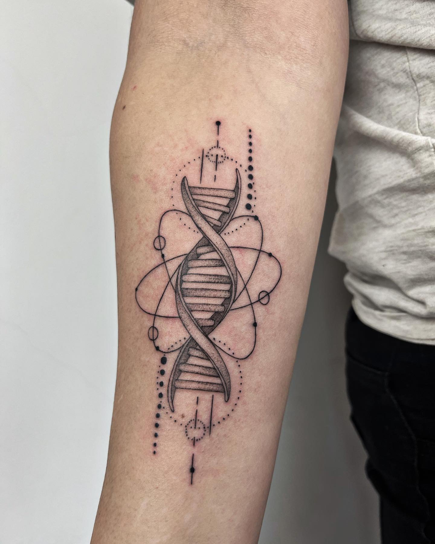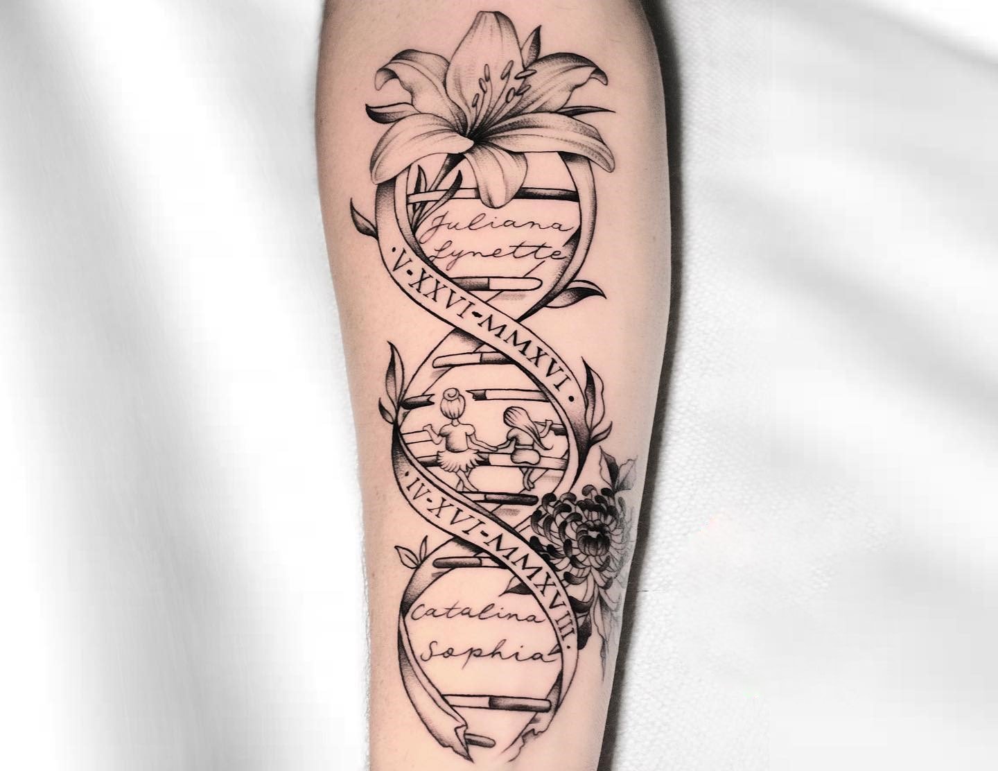 - Lien Familial : L'ADN symbolise également le lien génétique avec la famille et les ancêtres. Pour certaines personnes, ce tatouage devient un symbole de leur lignée et des traditions familiales.