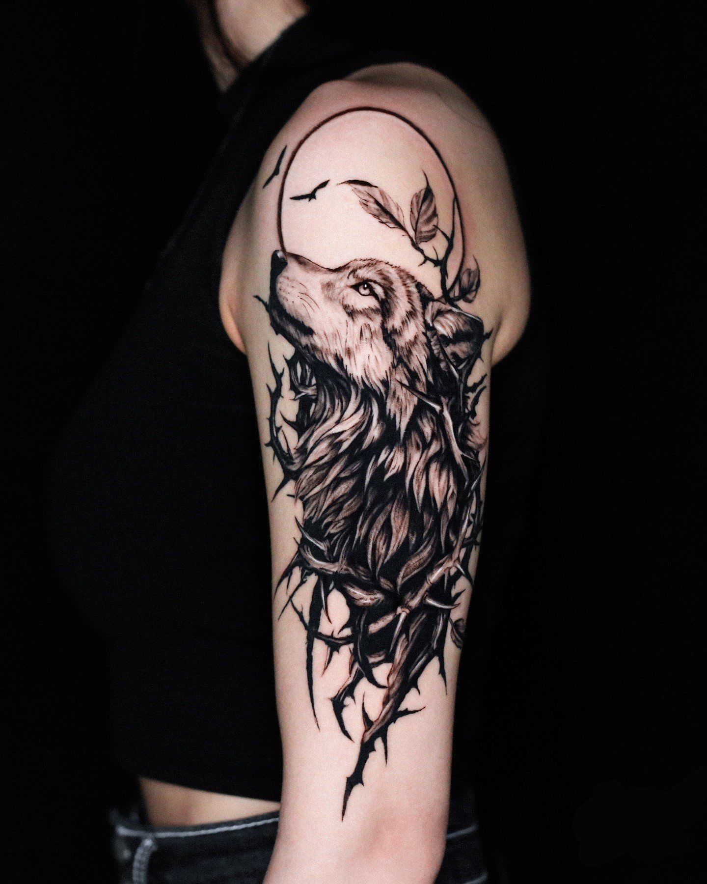 - Omoplate. Un loup sur l’omoplate est esthétique, notamment lorsqu'il est réalisé en style graphique ou minimaliste. Cet emplacement est idéal pour des tatouages de taille moyenne.
