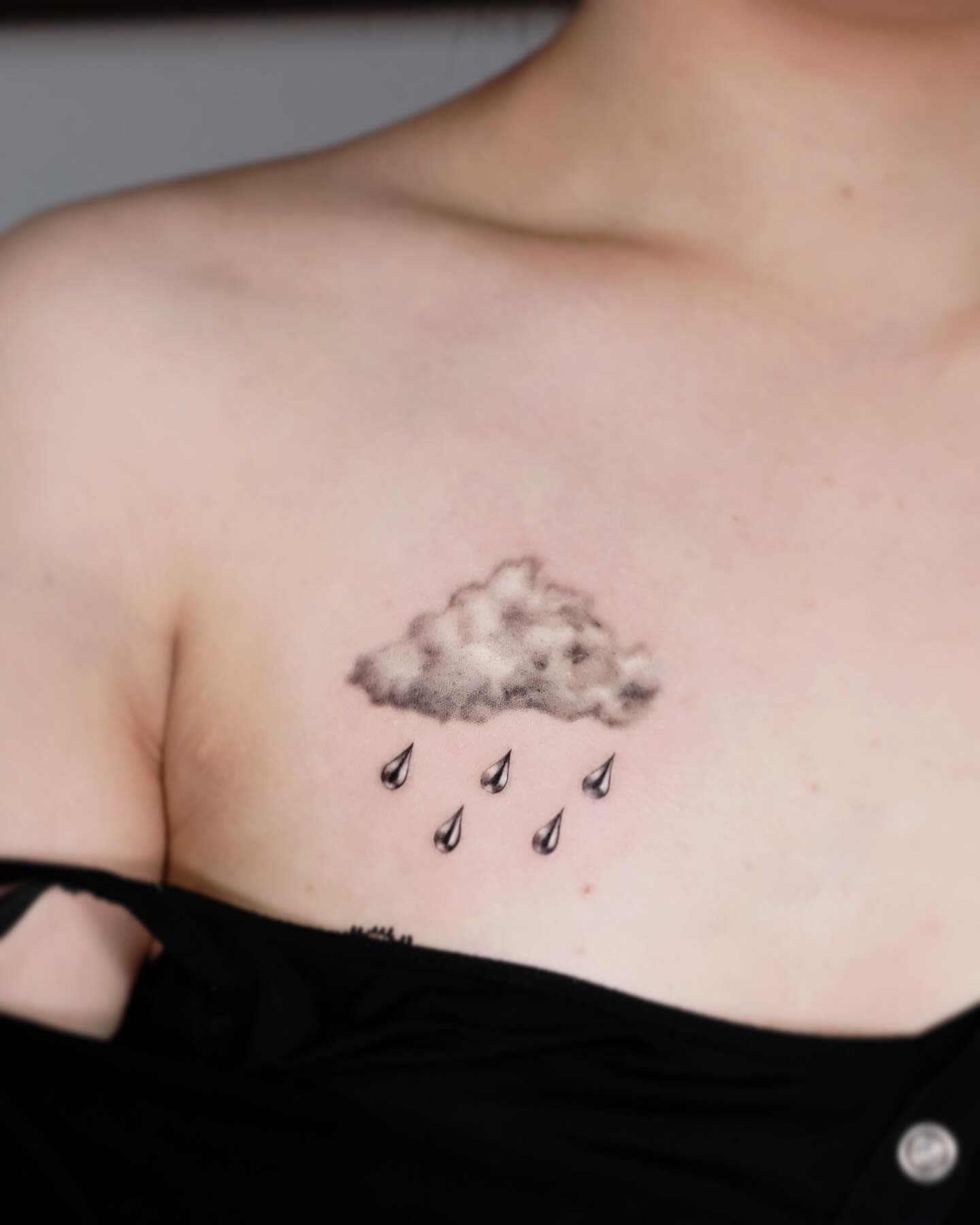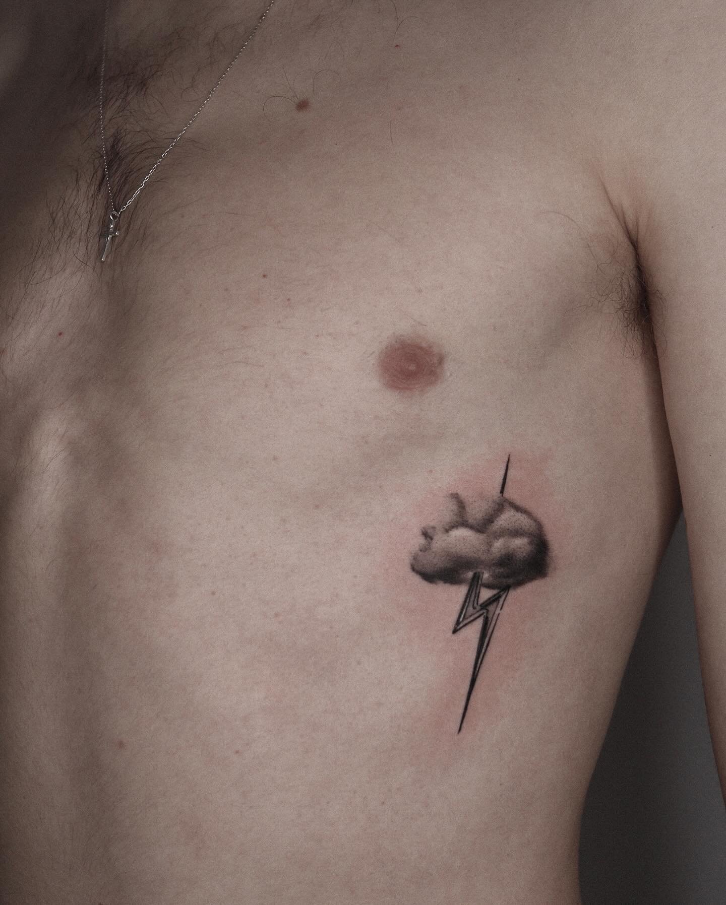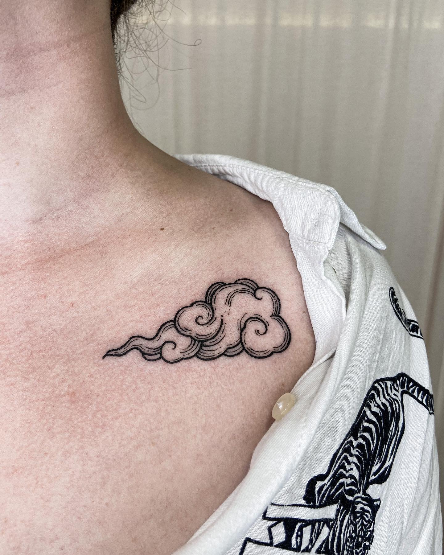 - Poitrine : Le tatouage de nuage sur la poitrine peut être un élément autonome ou faire partie d'un dessin plus grand.