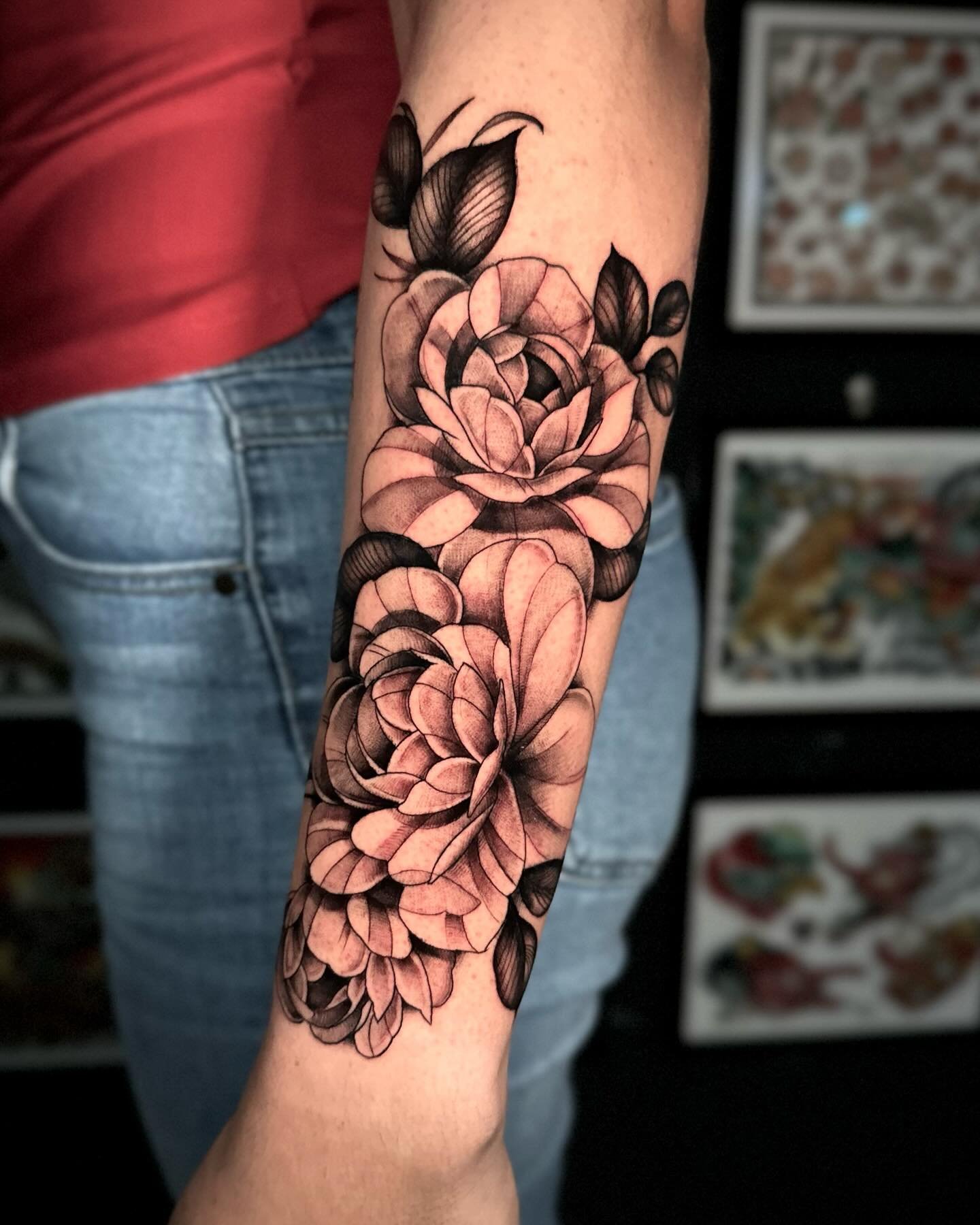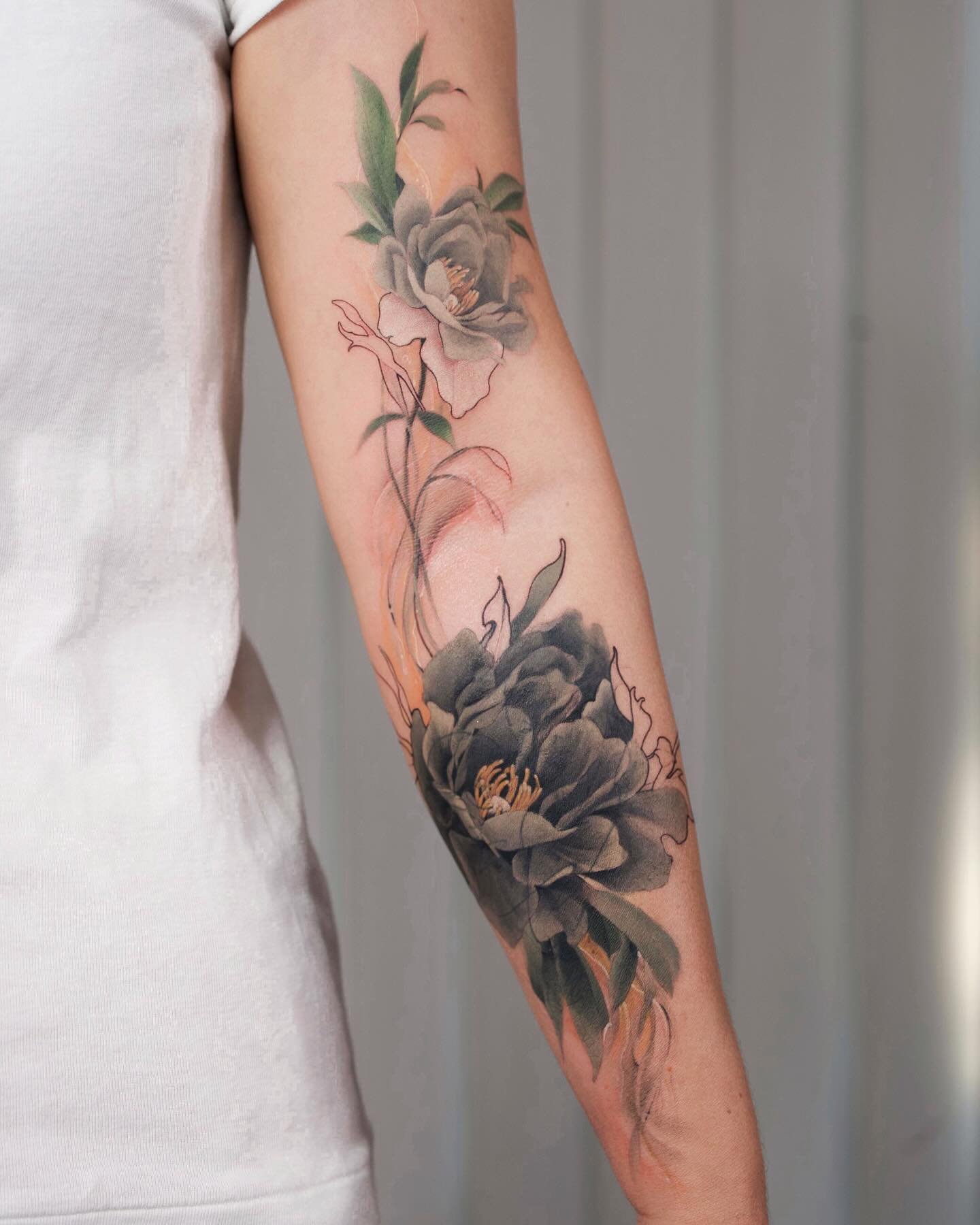 Variations du Tatouage de Pivoine : Couleur, Style et Emplacement