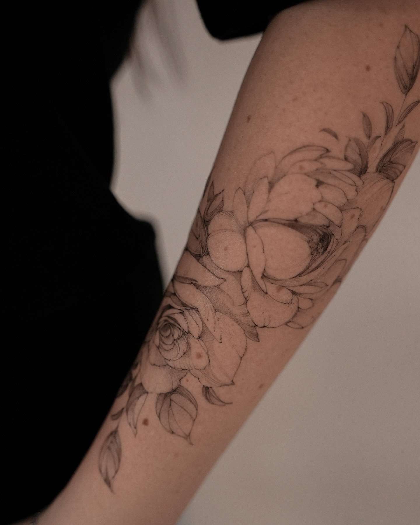 L'un des aspects uniques d’un tatouage de pivoine est la diversité des variantes, permettant d’exprimer un style individuel.