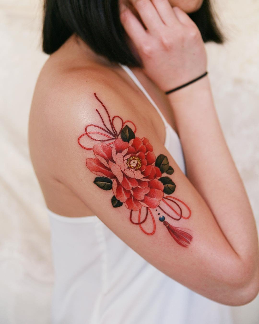 On considère que l’image de la pivoine tatouée sur le corps peut servir d’amulette protectrice puissante.