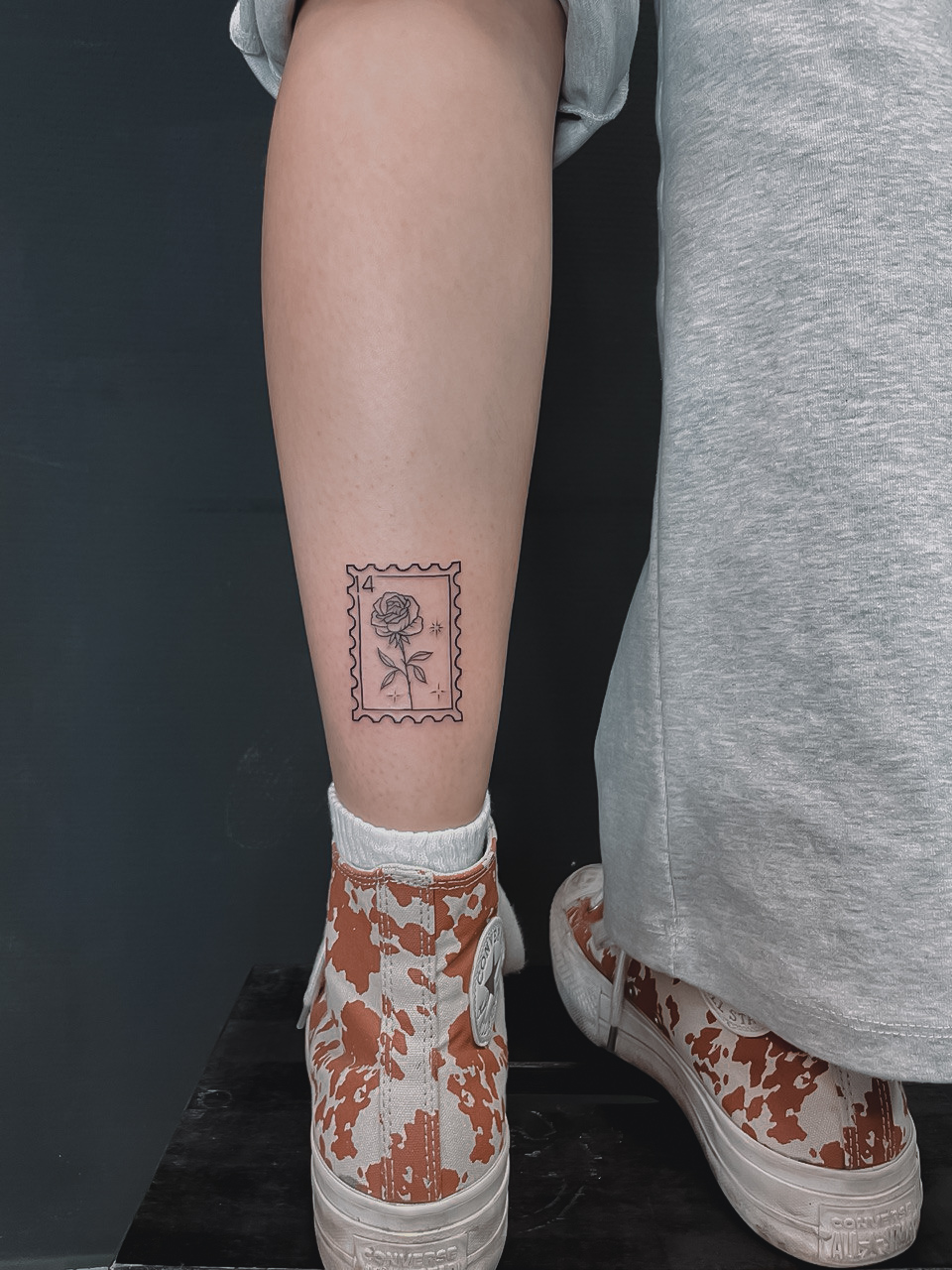 #Rose #Tatouage sur la jambe #Marque #Tatouage